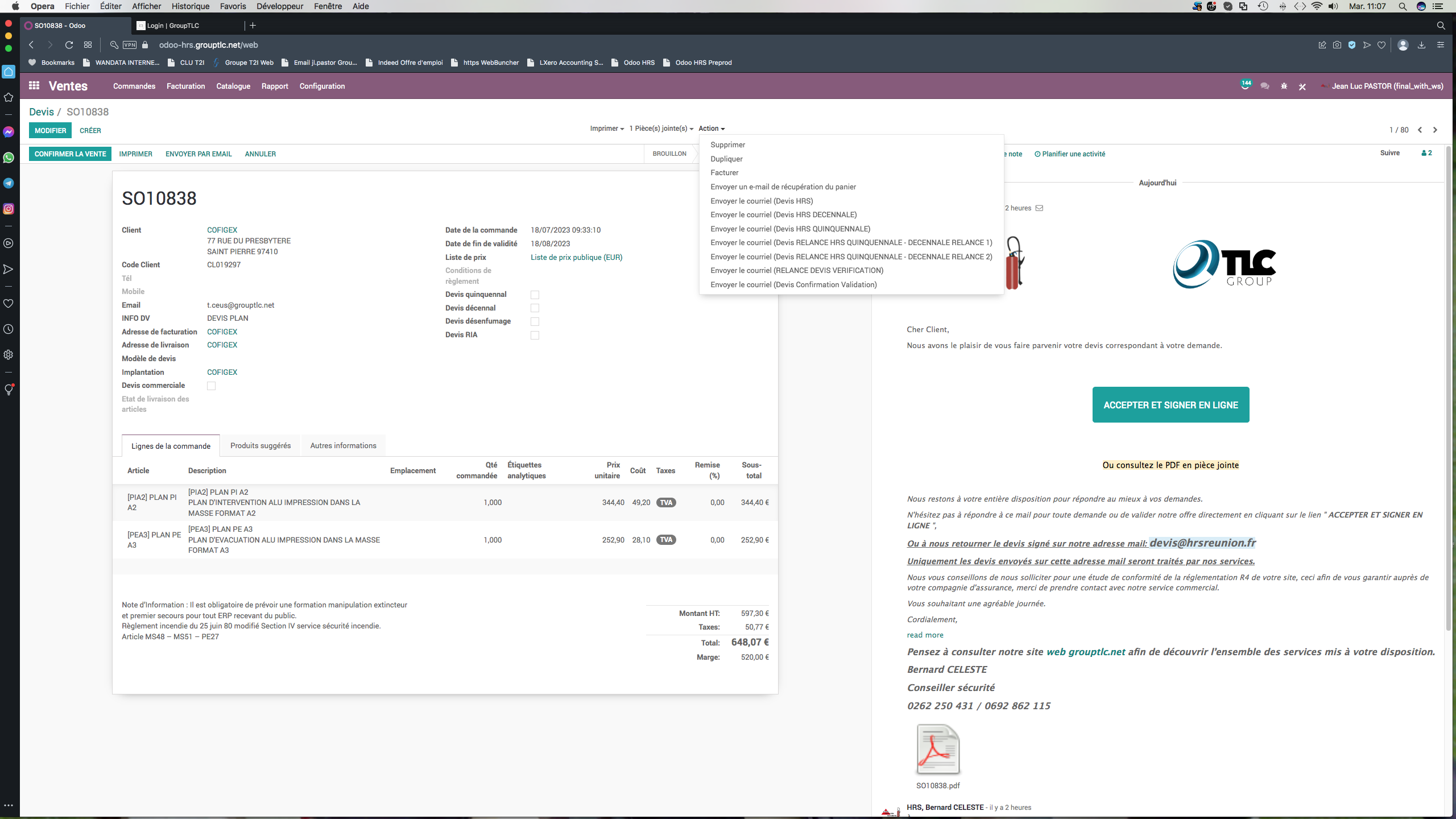 Action Réaction, voici Ludo la possibilité de retourner dans Action la confirmation de la bonne réception du devis signé.